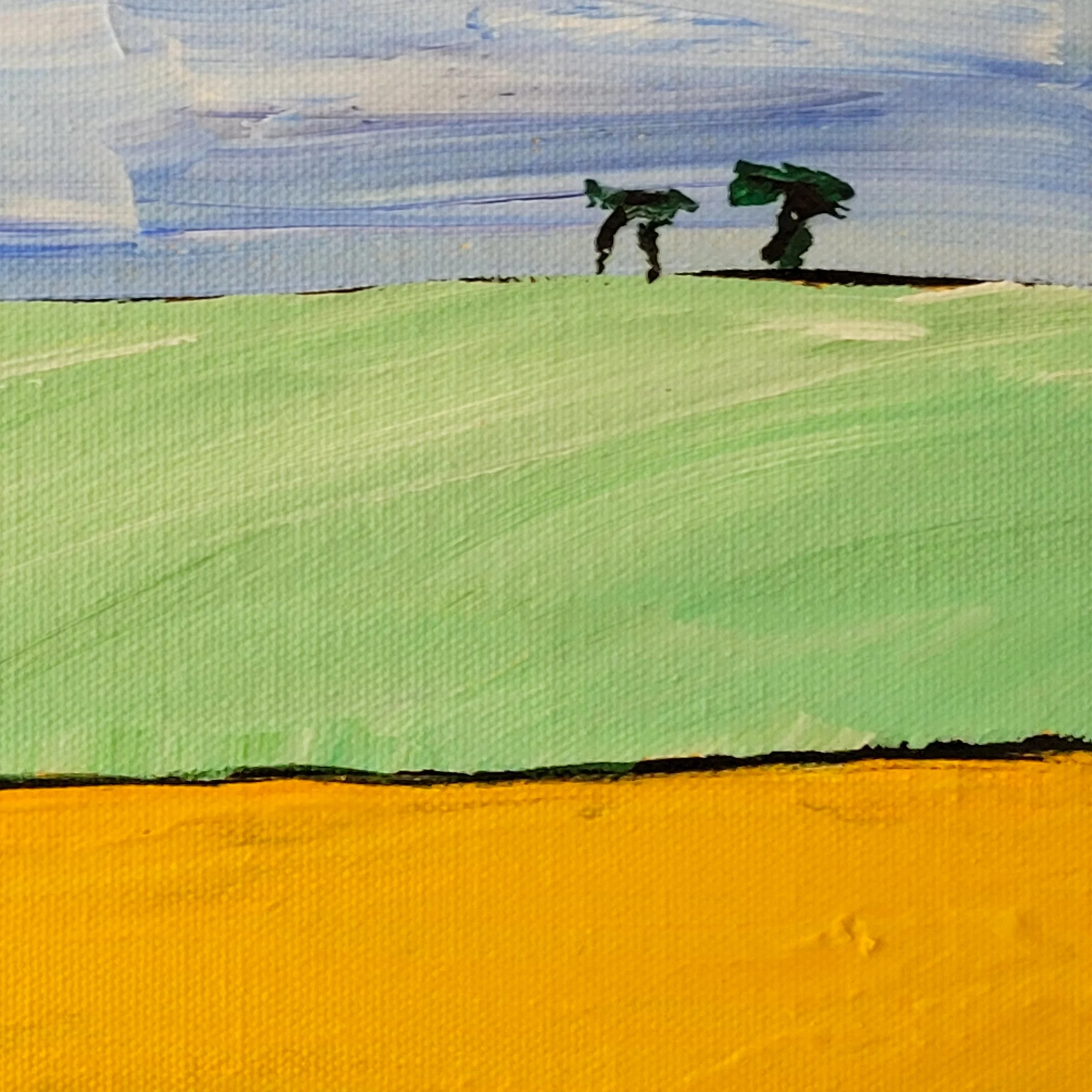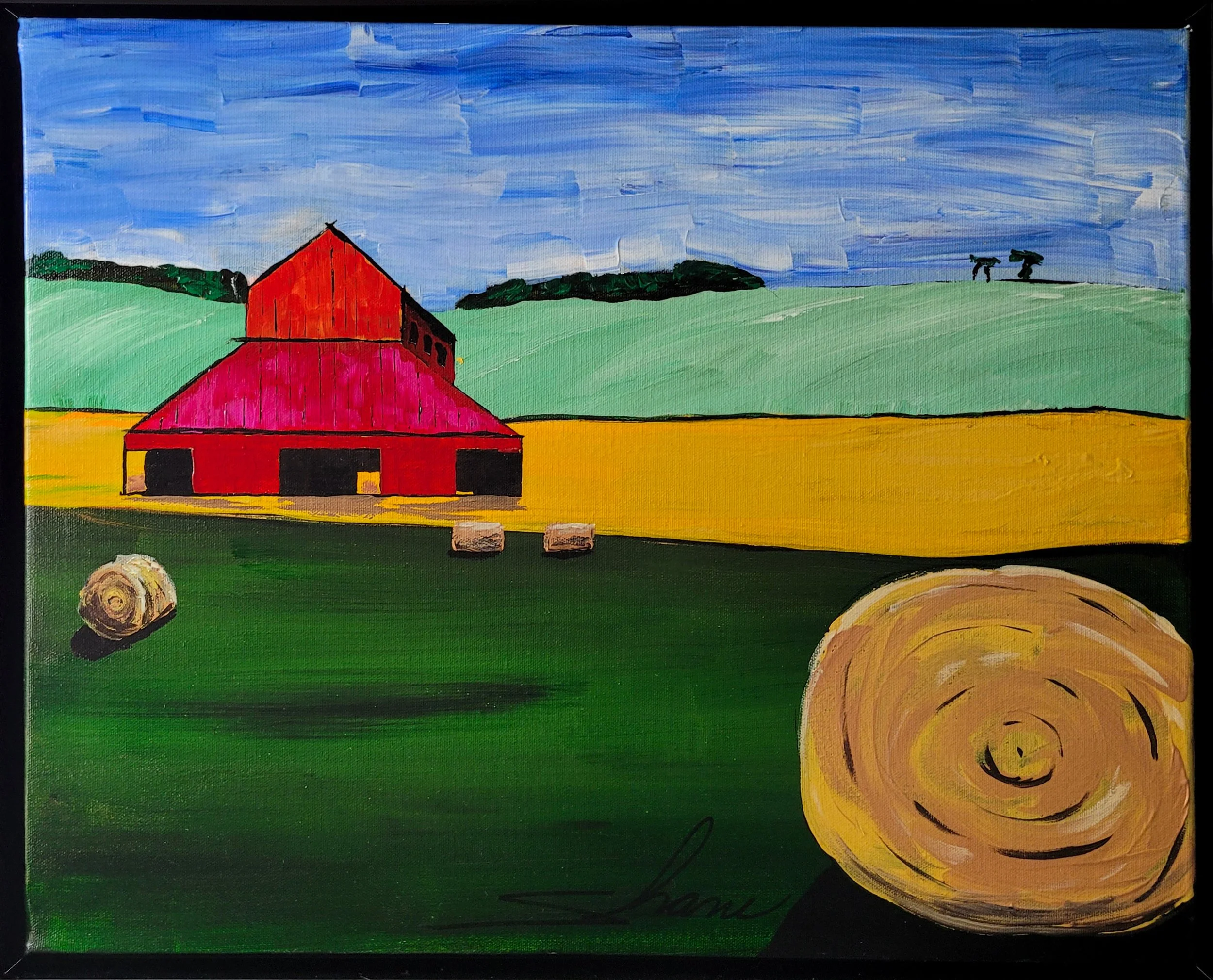 The painting "Peace and Quiet" brings a sense of serenity and tranquility to the viewer. The use of quick brushstrokes and gentle hues creates an atmosphere of calmness and stillness, while the traditional red barn and hay bales provide a nostalgic nod to the hardworking American farm life. This painting reminds us of the simple beauty of rural life, and the peace that can be found in the quiet moments of nature. It is a tribute to the traditions and values that are at the heart of our country, and a reminder that amidst the hustle and bustle of modern life, there is still peace and quiet to be found.