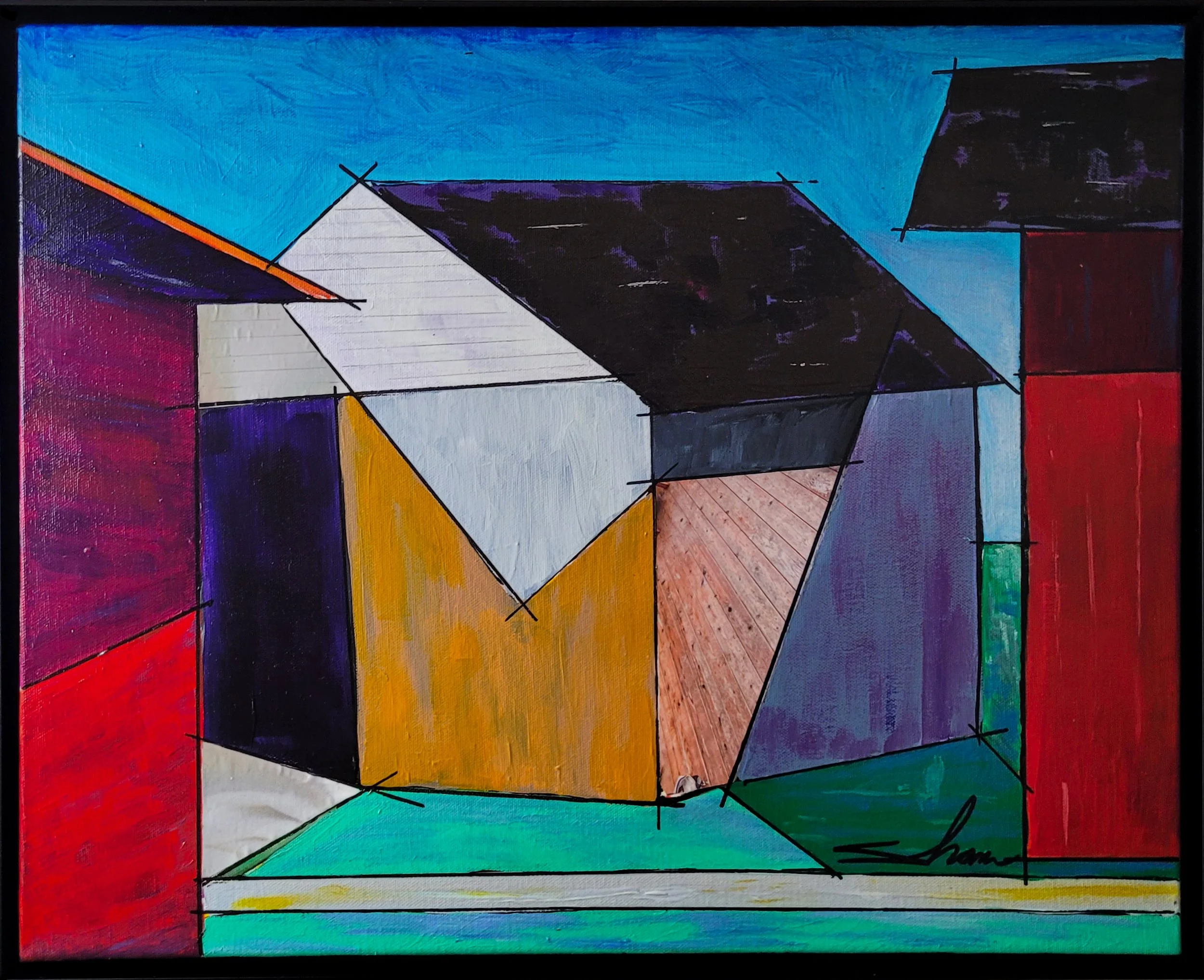 A homestead can be filled with quaint and peculiar buildings, baffling to the onlooker. This painting “The Back Shed” represent these building arrangements, and wonder of the decisions made during their layout and construction. The artist ties in multiple structures, keeping you up-close and into the environment. Yet allows a bit of sky and landscape to slide in, so you can still tell it’s a farmstead.